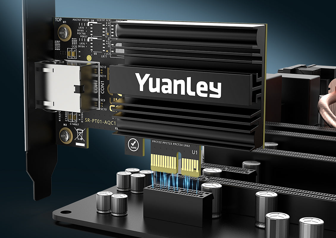 10G PCIe Network Card, YuanLey 10G Base-T Ethernet Card with Marvell AQC113 Conrtoller, PCIE to 10Gb RJ45 Ethernet Adapter NIC Compatible with PCI Express X1,X4,X8,X16, for Windows 10/11, Linux OS