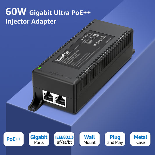 YuanLey Gigabit PoE Injector 60W, PoE++ Injector Converts Non-PoE to PoE++ Network, IEEE 802.3at/af, 10/100/1000Mbps PoE Adapter, Distances Up to 325 Feet, Plug & Play, Wall-Mounted