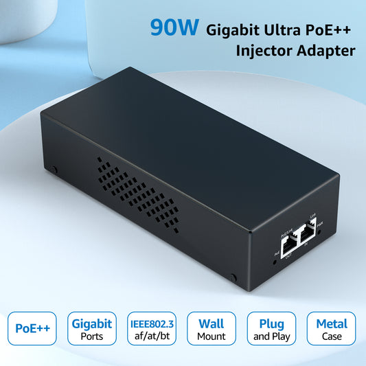YuanLey Gigabit PoE Injector 90W, 10/100/1000Mbps PoE++ Injector Adapter, IEEE 802.3bt/at/af, Up to 325 Feet, Metal Case Desktop/Wall-Mount, Plug & Play