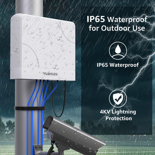 YuanLey 4-Port PoE Switch Gigabit- Waterproof Outdoor Ethernet Unmanaged Network Switch with VLAN Function, 78W Built-in Power, IEEE802.3af/at Support and Plug & Play, Ideal for Outdoor Use