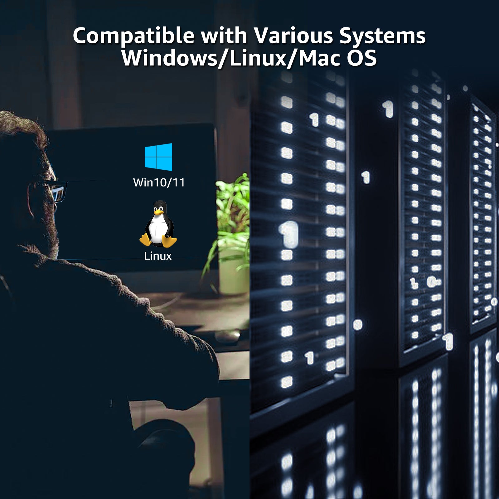 - 🧩 Broad System Compatibility & Easy Integration – The 5G network card supports multiple operating systems, including Windows 7/8/10, Windows Server, Linux, and VMware ESXi. Designed for maximum flexibility, it fits into PCIe x1, x4, x8, and x16 slots, making it easy to upgrade most desktops, workstations, and servers.