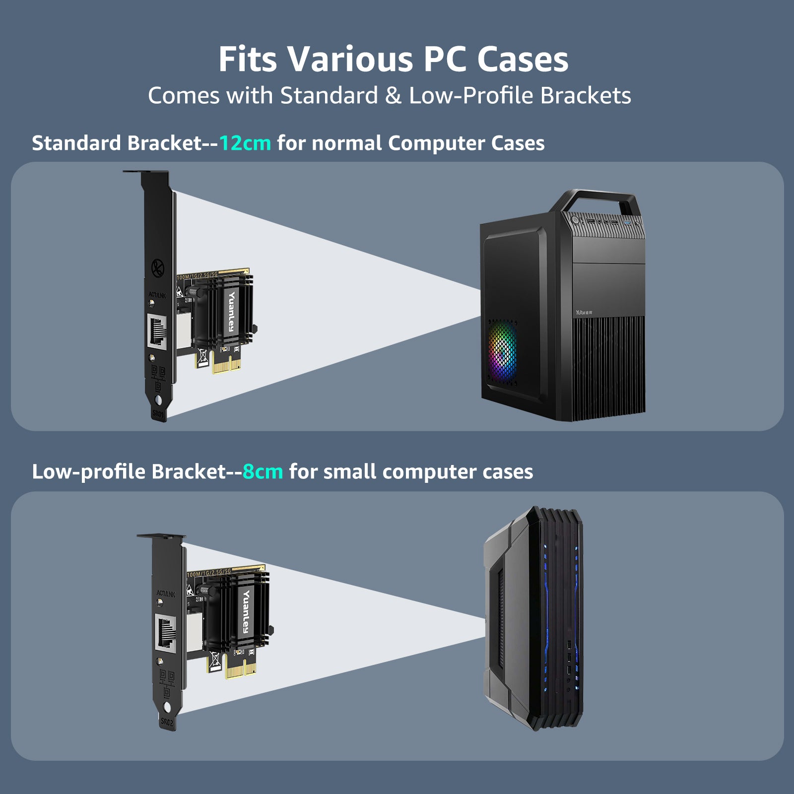 - 🛠️ Flexible Form Factor with Dual Brackets – Designed to meet various system builds, the 5G PCIe network card comes with both full-height and low-profile brackets for easy installation in tower PCs, compact cases, and rackmount chassis.
