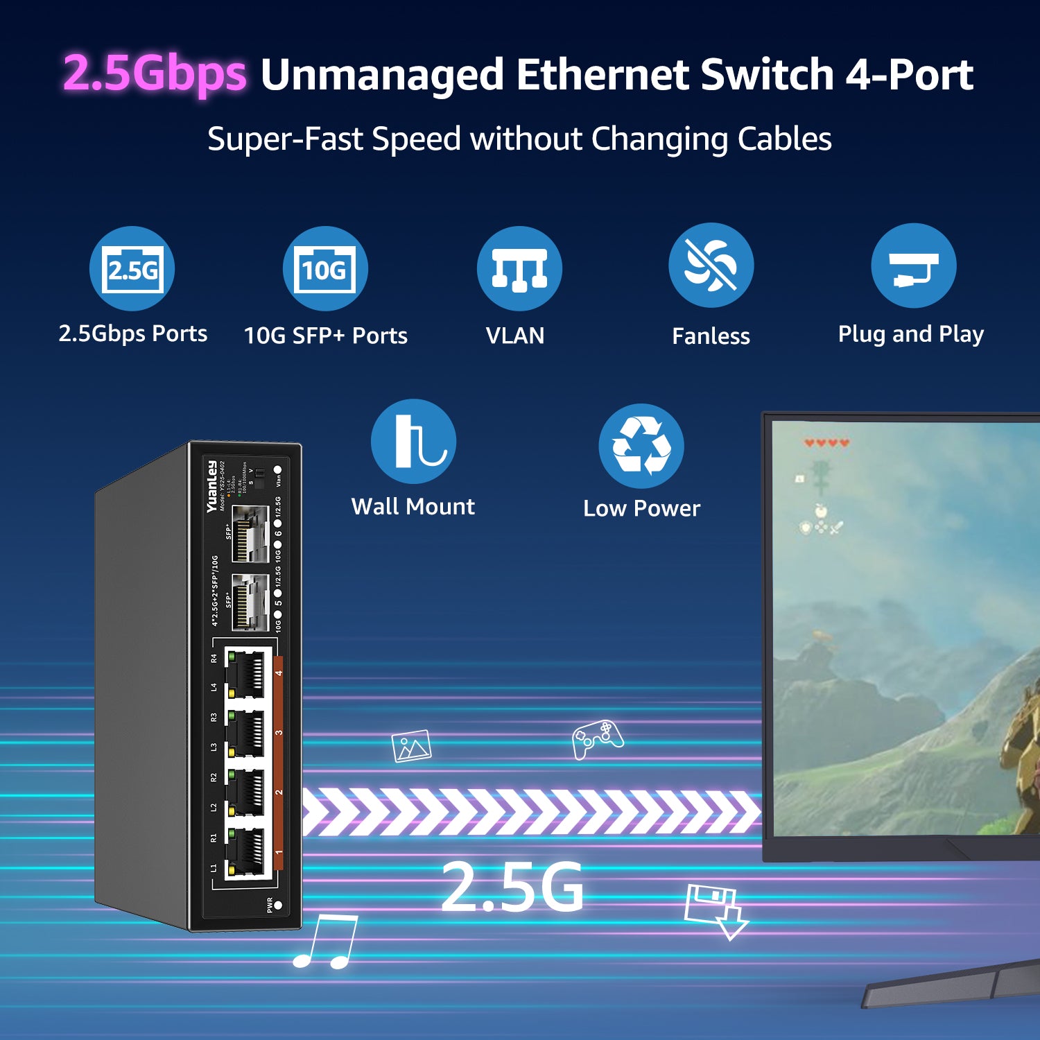【Widely Used】Supports wall mount and desktop placement. Widely used in various networks environment needs, such as 2.5G NAS, 4K video, gaming PC, 2.5G Server, 2.5G WiFi 6 AP, 2.5G PCIe Adapter and more.