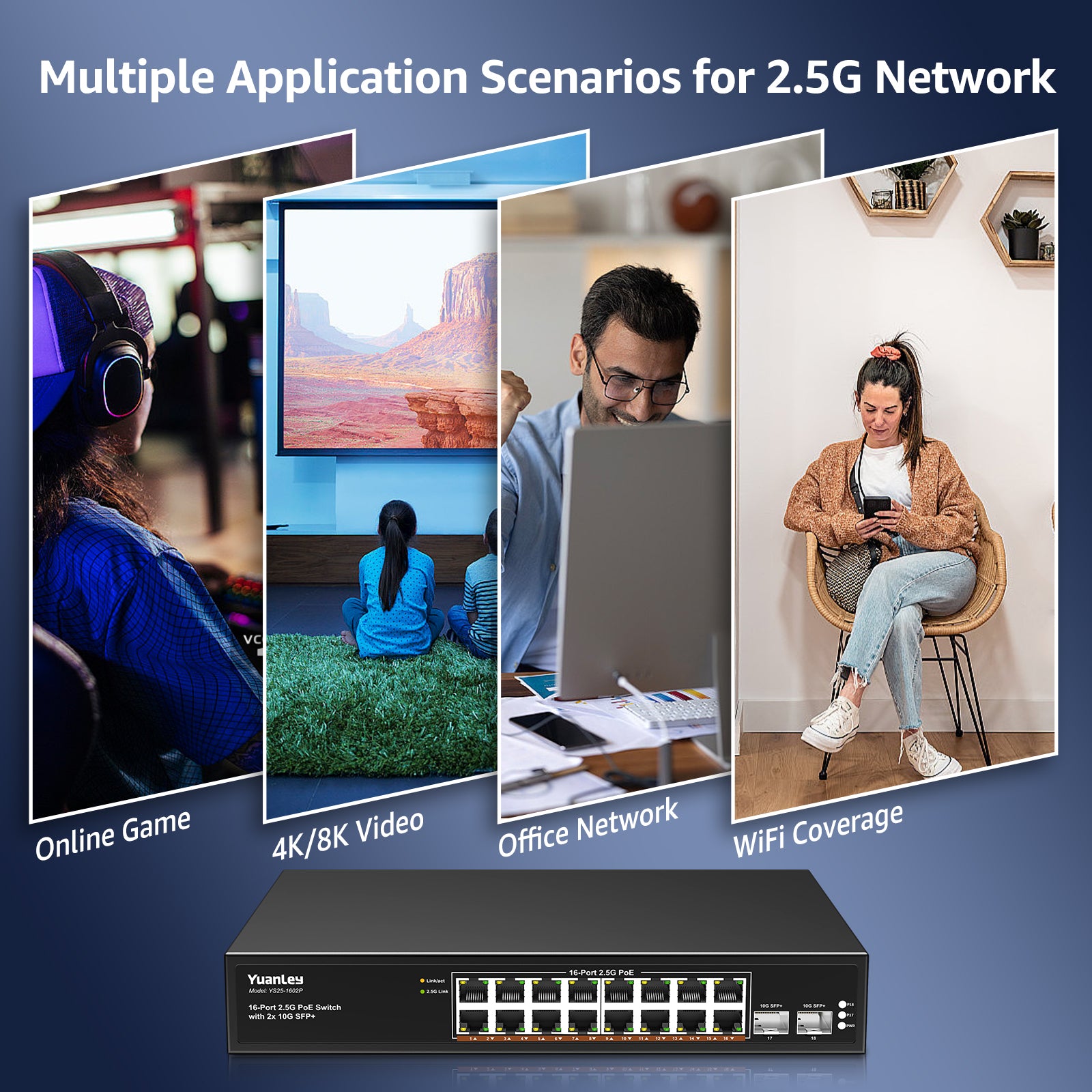 【Widely Used】Supports rack mount and desktop placement. Widely used in various networks environment needs, such as 4K video, gaming PC, NAS, PCIe Adapter, Server, WiFi 6 AP and more.