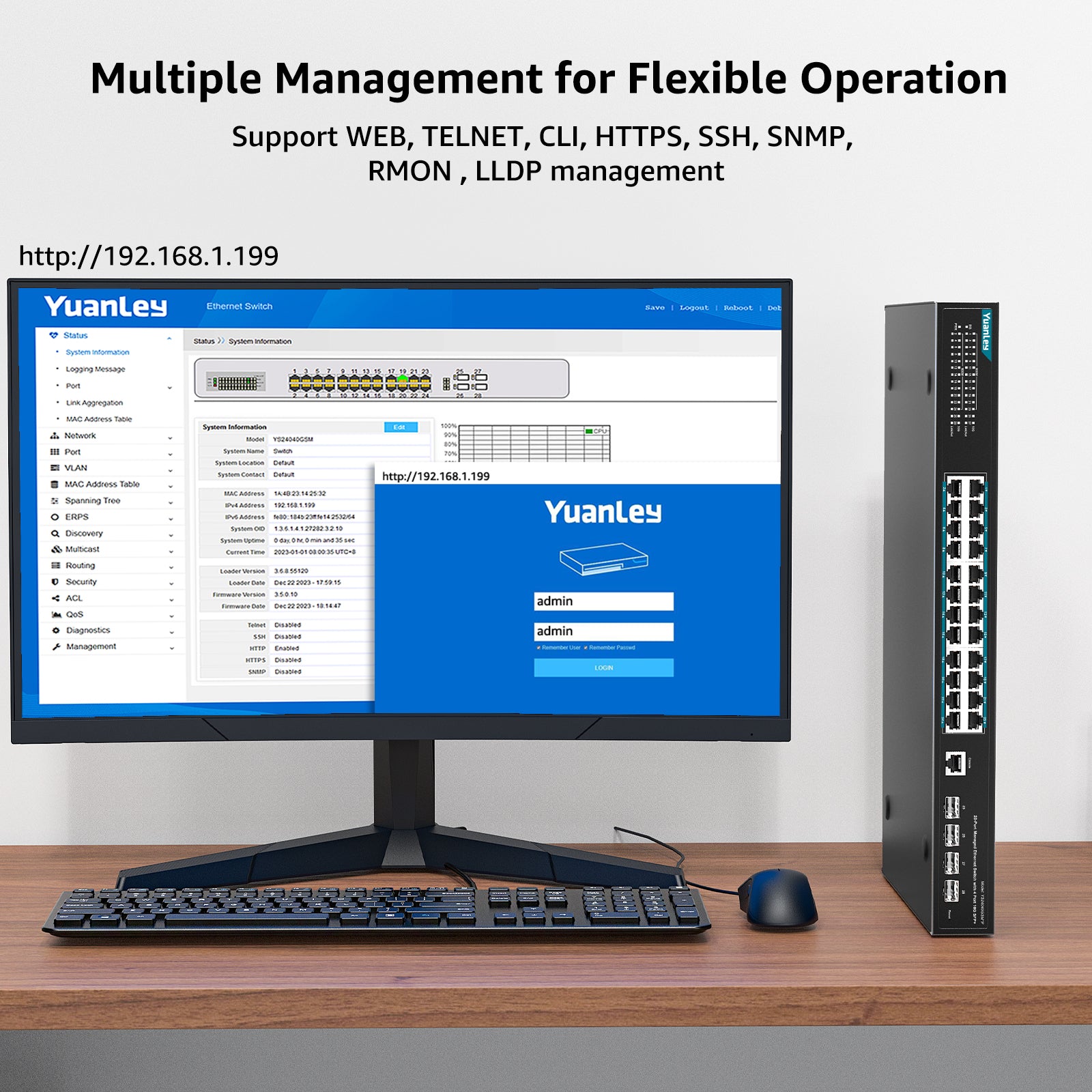 - 【Flexible Management】It supports a variety of management and maintenance methods such as Web-based management, CLI commands (Console, Telnet), and SNMP (V1/V2/V3). Flexible management options are available on demand. The web interface is clean, easy to use, and suitable for both general and professional web management.