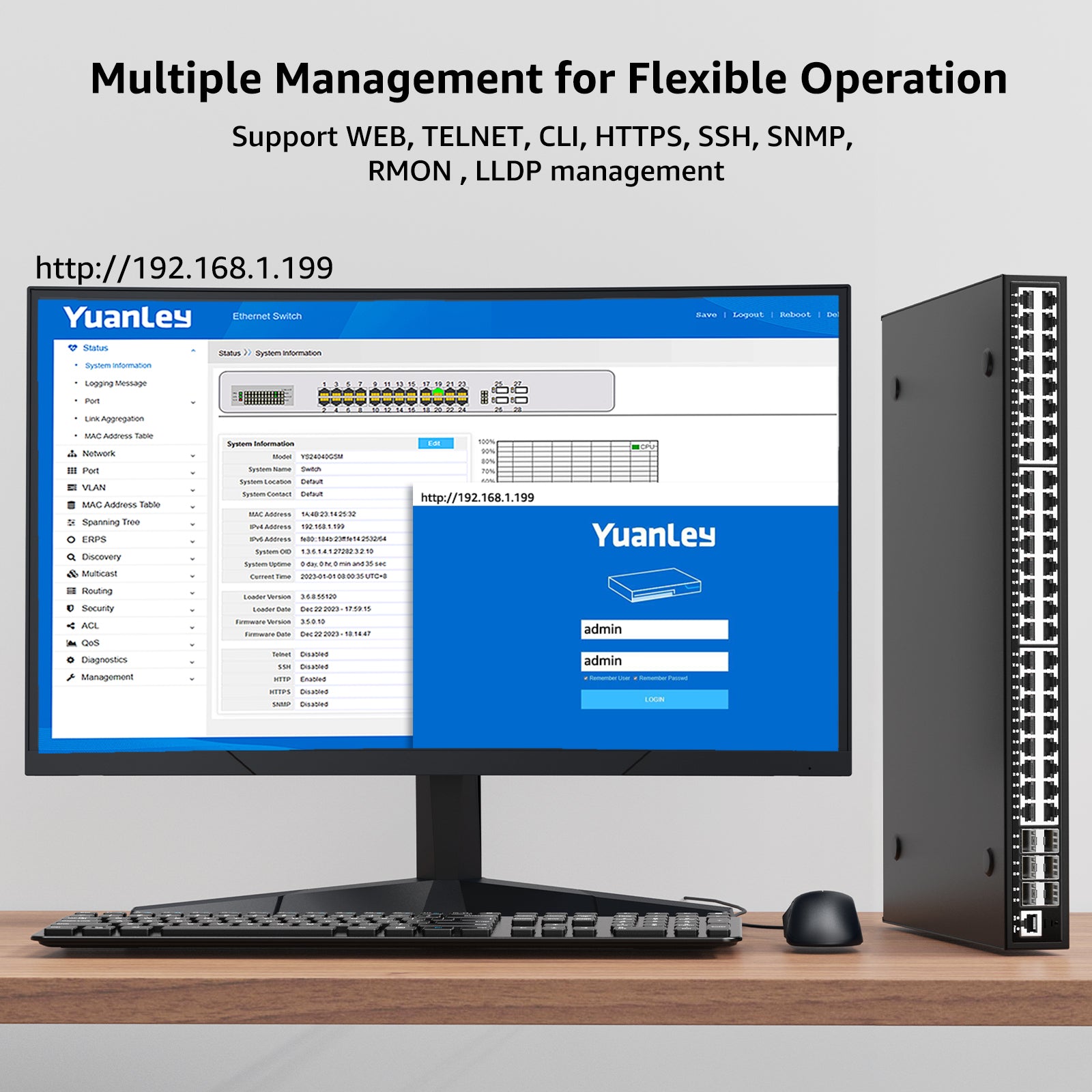 - 【Multiple Applications】YuanLey managed switch is designed exclusively for the networking needs of growing businesses, with an extensive suite of management and security features available. These devices are cost-effective for small and medium-sized businesses, providing ideal solutions for a variety of network scenarios. It can be widely used in small and medium enterprises, Internet cafes, hotels, schools and other Ethernet access scenarios.