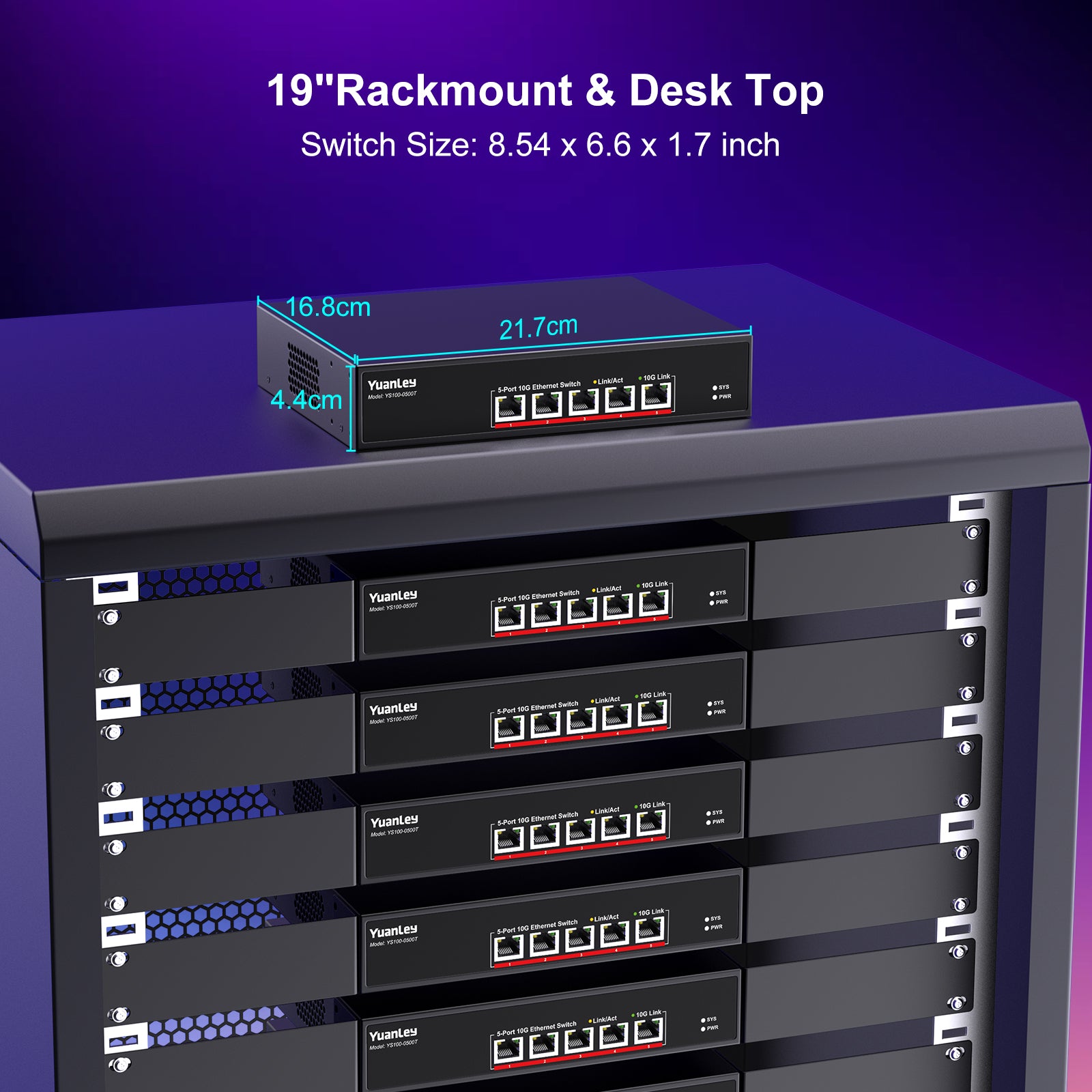 【Unmanaged Network Switch】No any setup required, Plug and Play. 10Gbps ethernet switch, Just plug in the power cable, connect the ethernet cable to your device and it's easy to use without any configuration.