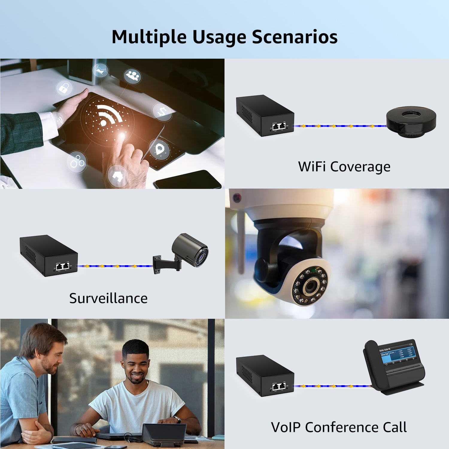 - 【Easy to Install】Support wall mounting and desk top, meet your different installation needs, suitable for most installation scenarios. Plug-and-play, no setup required, powering IP cameras, wireless APs and other network devices.